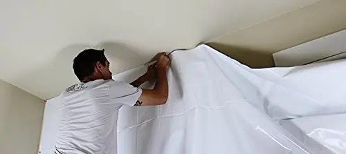 Black White Poly Film is lightweight enough to hang on a wall with tape, yet rugged enough to be tacked or stapled to ceilings, drywall and flooring for a more permanent installation. This lets you put the Film to work in minutes. Scrim reinforcement between the black and white layers enhance the film's puncture resistance, increasing the service life.