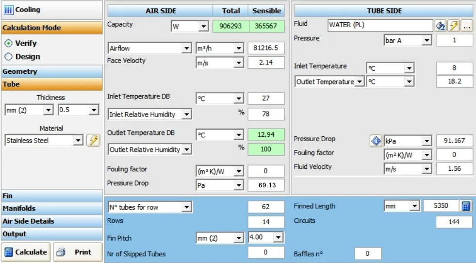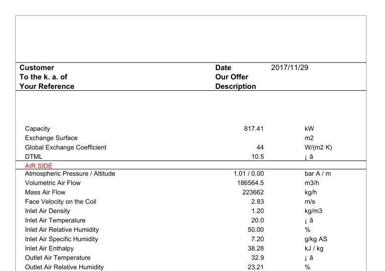 Air Temperature(Inlet/Outlet)(℃) | 35/45.85 | Liquid Temperature(Inlet/Outlet)(℃) | 65/45 | ||