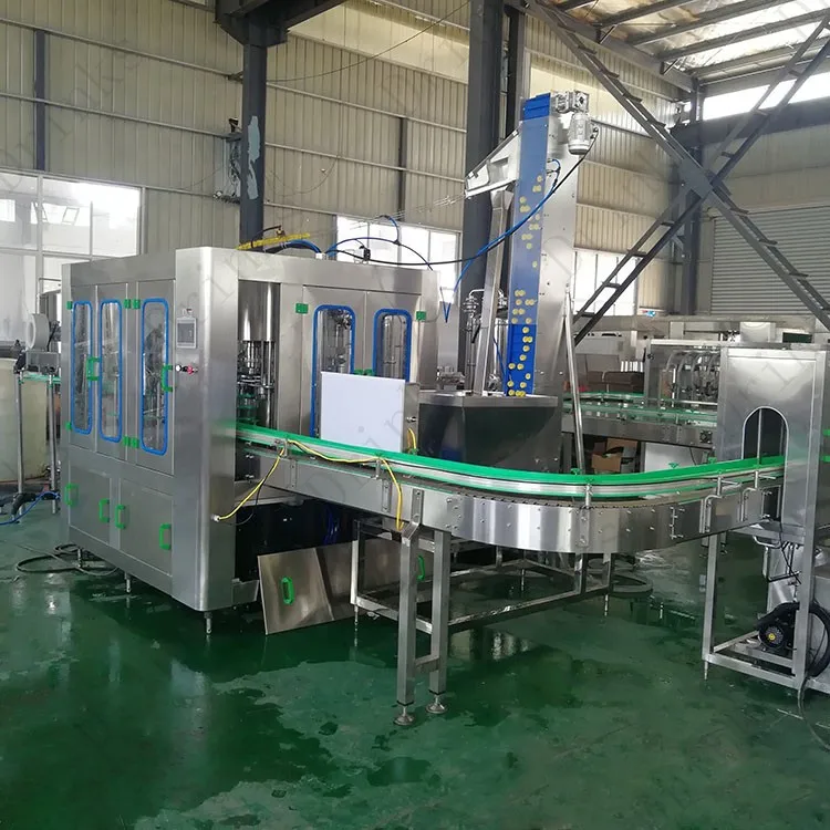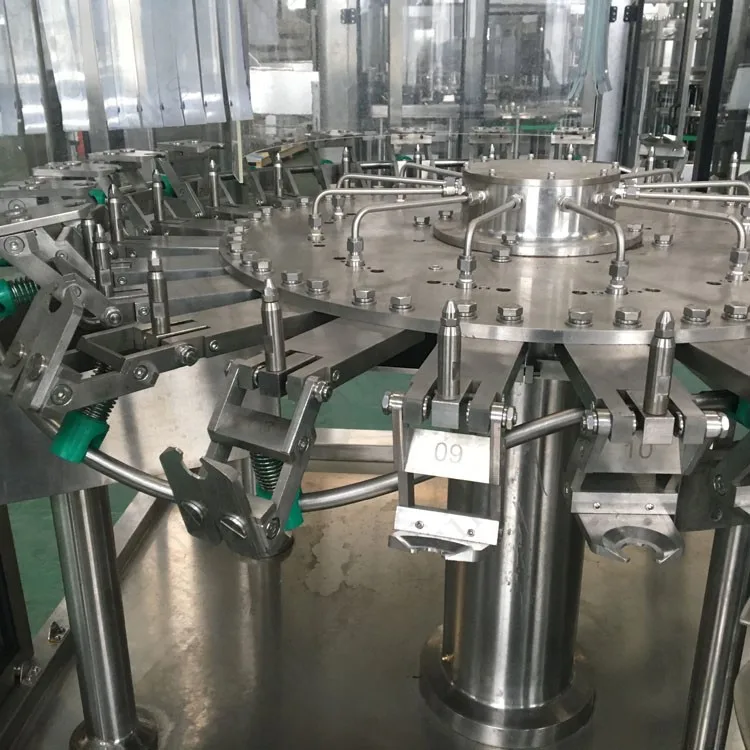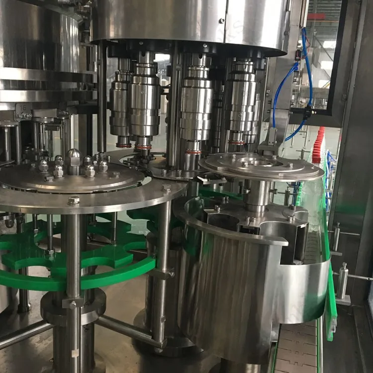This machine has washer,filler,capper three functions in one body, automatic in total process, it is suitable for PET bottled cola ,sprint etc. It makes by high quality SUS304, key parts are precision machined by NC tool. The total machine uses advanced photoelectric detection technology to detect each part's operation status, no bottle no filling, and no bottle no capping, automatic and easy operation.