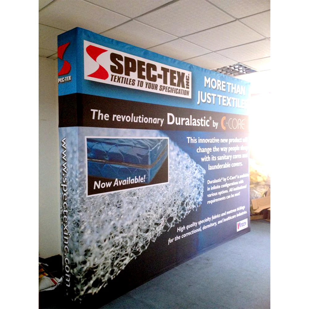 Features | 1. Light and portable, convenient to transport, reusable 2. Easy to install, no tools required 3. High quality dye sublimation image printing, waterproof, environmental-friendly, fadeless 4. High quality knitted polyester printing, foldable, smooth surface, double-sided printing, large format size image |