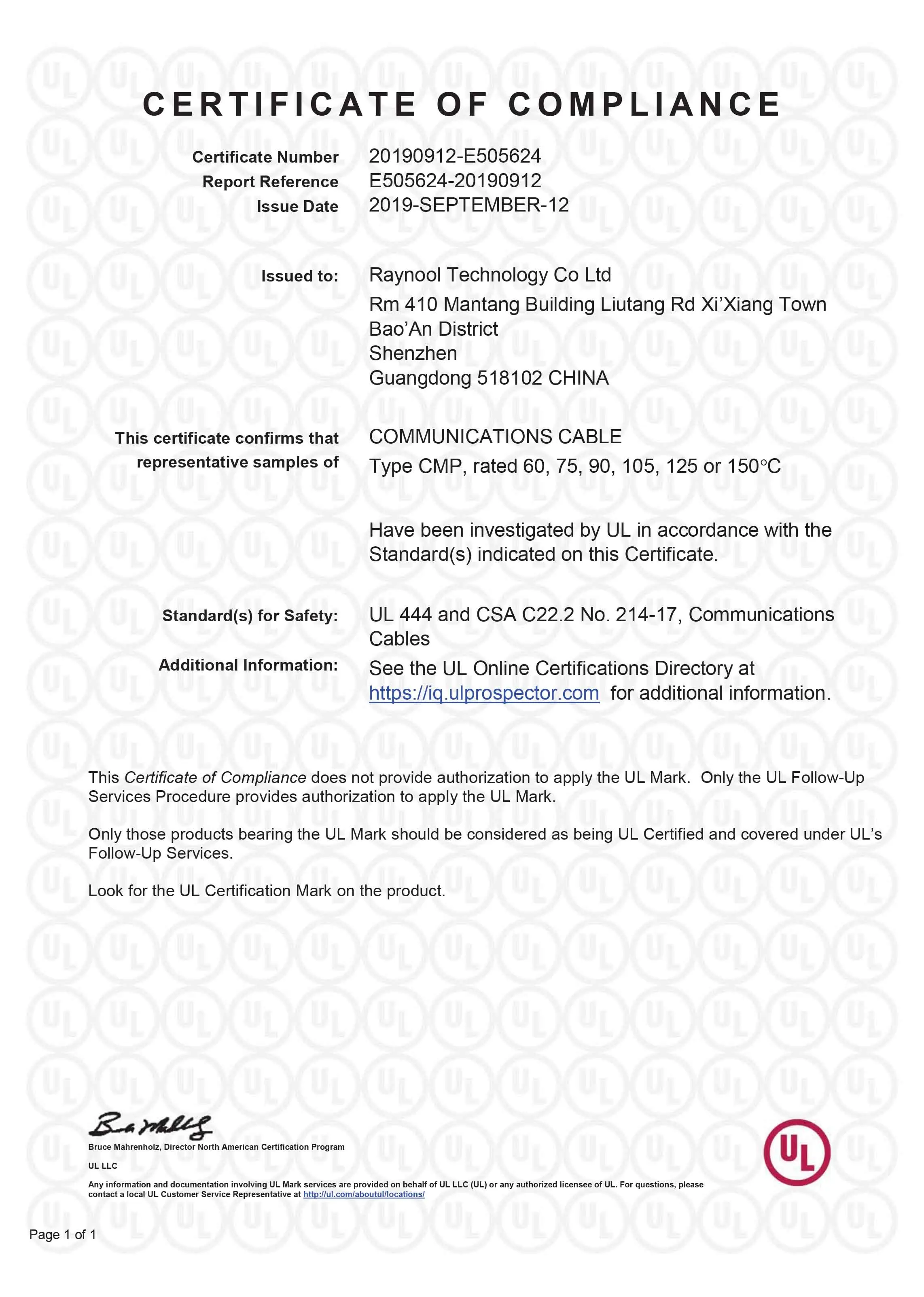 Raynool technology Co.,ltd has Its own R&D team ,and focuses on manufacturing RF connector, Cable assemblies, high speed cable assembly, and accessories for Wireless Infrastructure.
