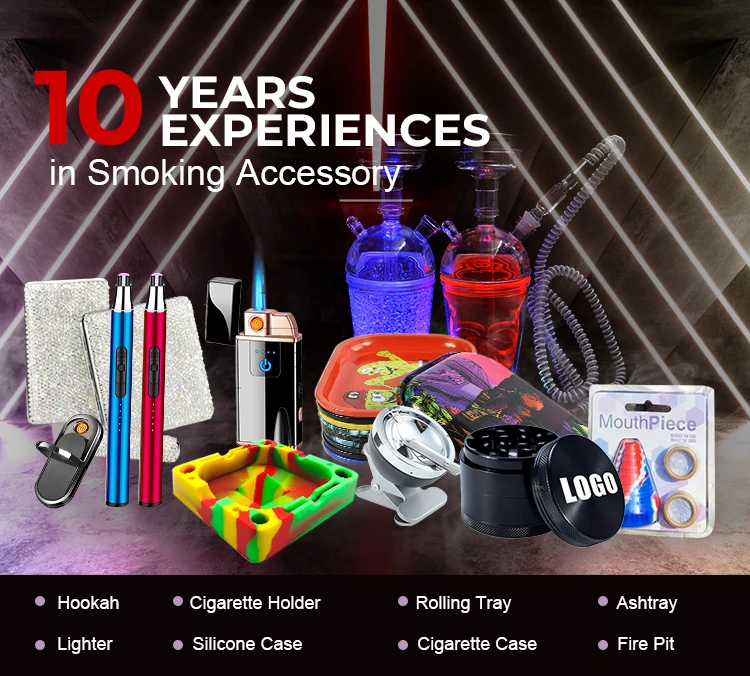 We mainly sell smoking accessories such as Hookah, Cigarette Holder, Rolling Tray, Ashtray, Lighter, Cigarette Case, Silicone Case and others which can't be displayed on Alibaba.