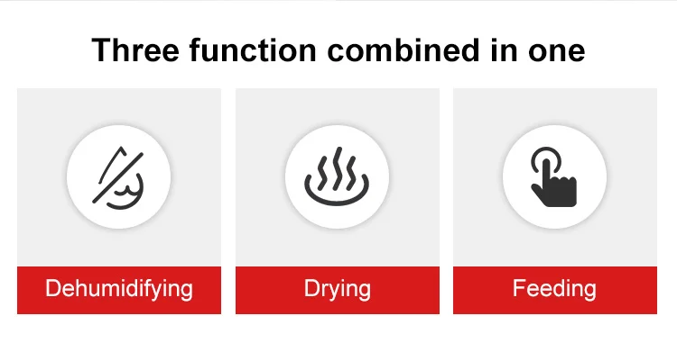 Model XDL | Drying heating (KW) | Drying blower (KW) | Feeding blower (KW) | Air compress (KW) | Humidity air flow (m³/hr) | Hopper capacity (kg) | Boundary dimension (mm) W*D*H | Net weight (kg) | 300U/200H |