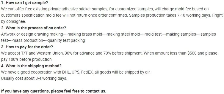 Order Process | 1. Inquiry&Quote 2. Proforma Invoice confirmation 3. Send Artwork File to us,then we send Design layout for your approval 4. Make the Payment 5. Product pictures for approval after mass production finished 6. Shipment 7. Getting after sale service from us | ||
