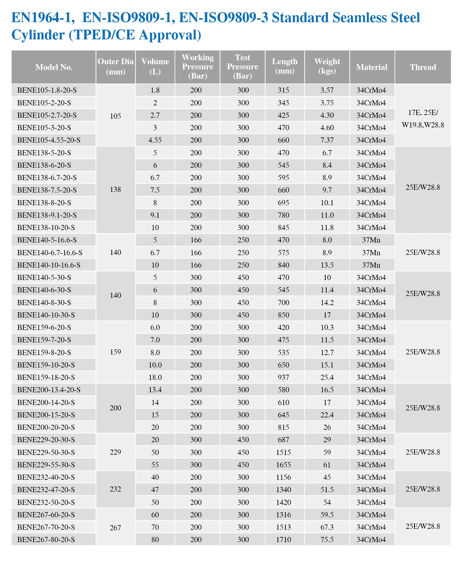 Model Number | Steel Cylinder |