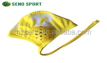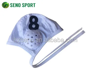 The Water Polo Caps are made out of a durable polyester and PBT material that comfortably conforms to any head shape. Each Water Polo Cap is secured to the head with a nylon tie and protects the ears with strong plastic ear guards. The Water Polo Caps sold in sets, numbered 1-13. Sets are available in white or navy team colors and each set comes with 2 red goalie caps. Available in Adult and Children sizes.