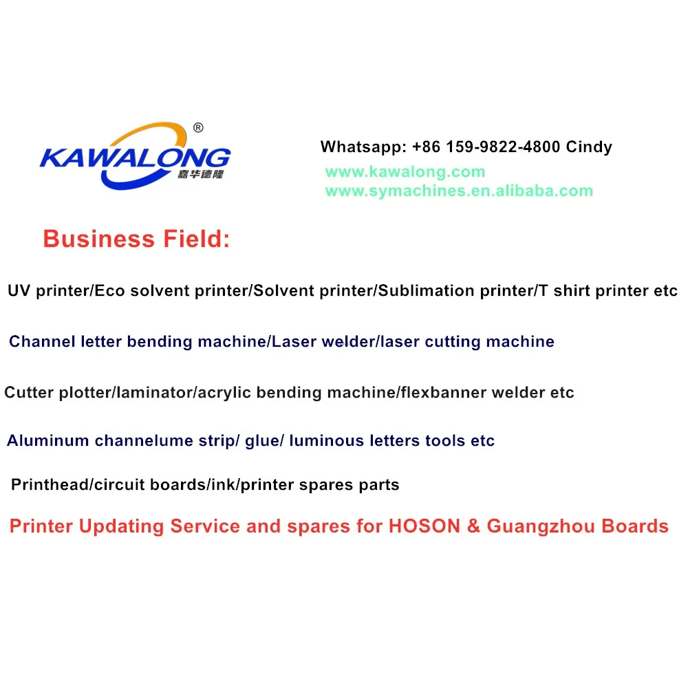 1. Eco solvent printer 2. flatbed UV printer 3. roll to roll UV printer 4. sublimation printer 5. laminator 6. cutter plotter 7. ink and printer spares parts