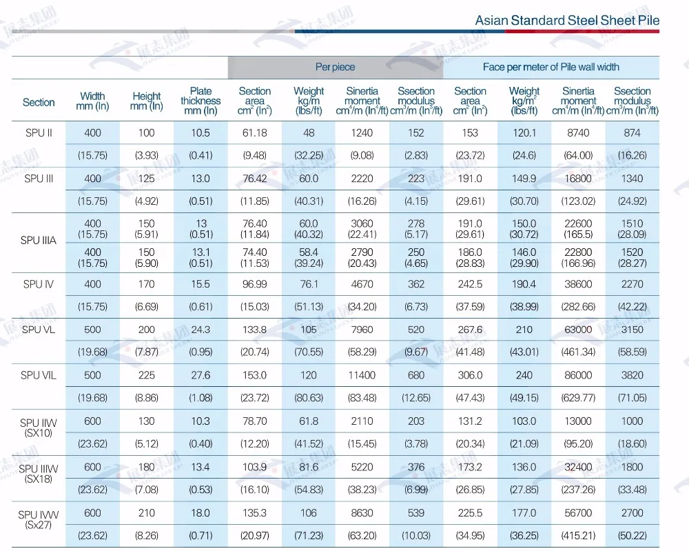 3.Wide range of section modules,suitable for various types of construction purposes,Service-proven to many kinds of projects such as permanent structures,temporary earth-retanining Works and temporary cofferdams etc
