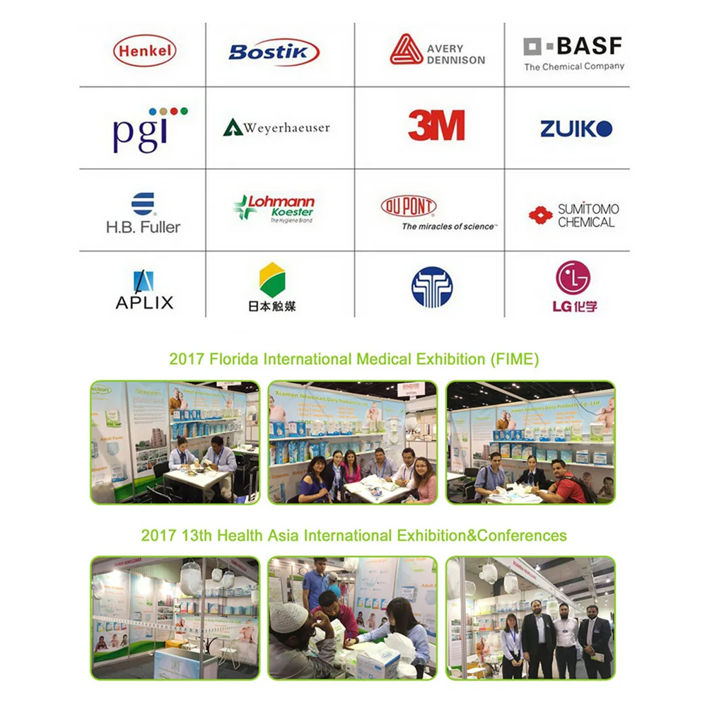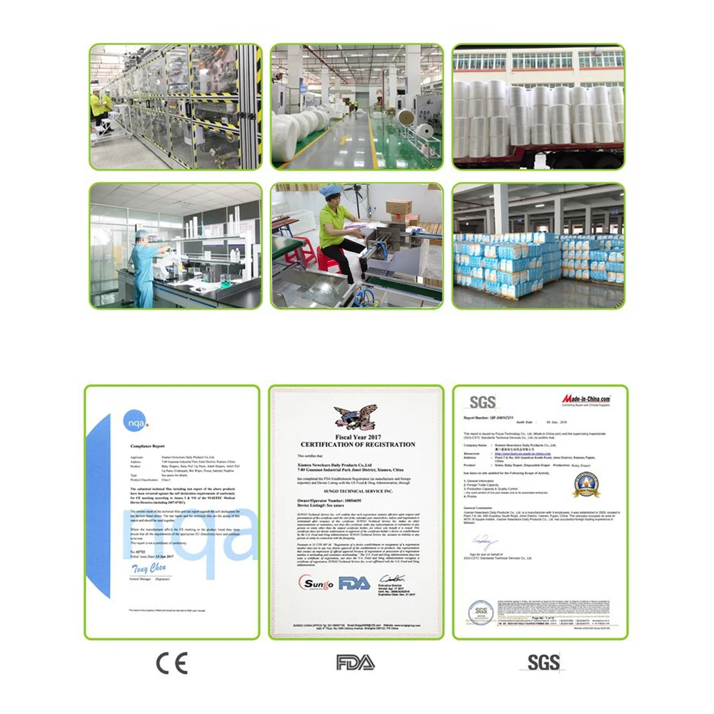 Established in 2009, Xiamen Newclears Daily Products Co., Ltd. located in beautiful coastal international park city -- Xiamen. Our company is specialized in manufacturing and selling baby diapers, baby training pants diapers, adult diapers, under pad, wet wipes.