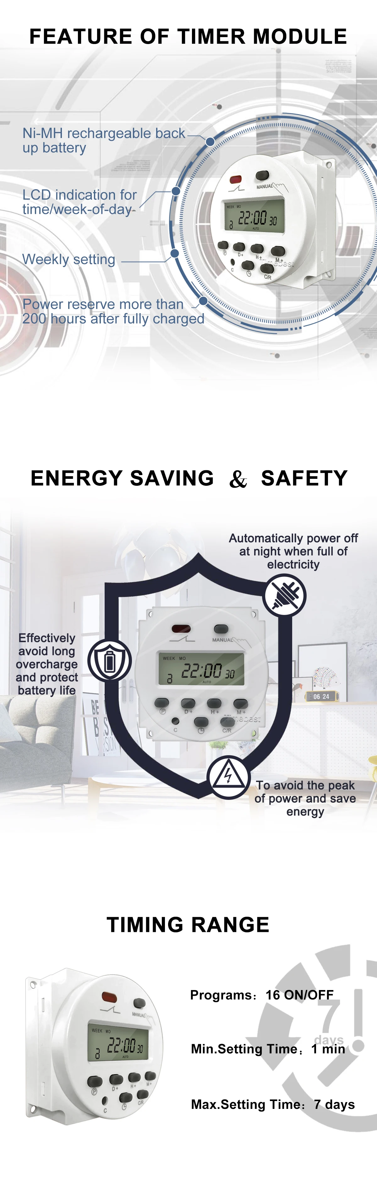 Timing Range | Working Tempreture | Programs | Working Error | Box Size(cm) |