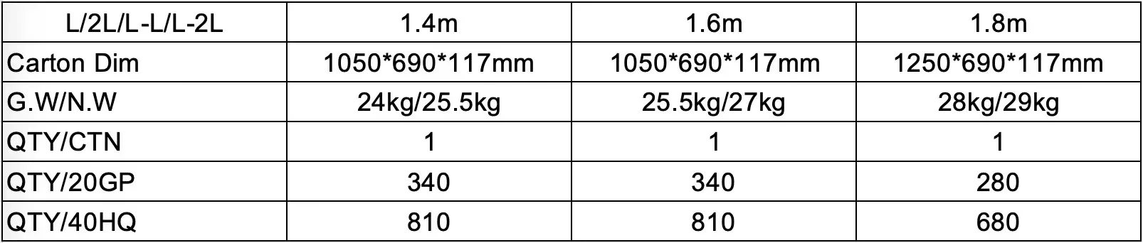 Item No | L/2L/L-L/L-2L |
