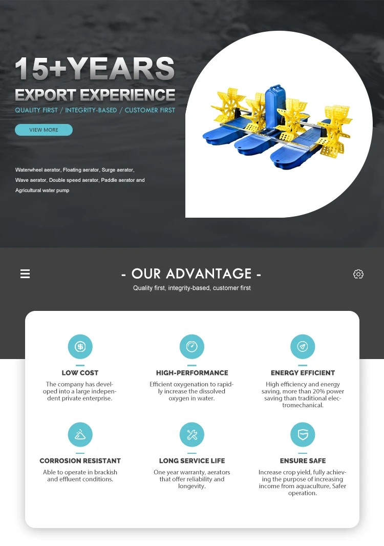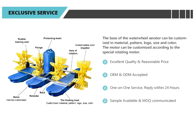 Model | Voltage (V) | Power (kW) | Oxygen transfer rate (kgo²/h) | Power efficiency (kgo²/h) | No load noise dB(A) | Weight (kg) | 20 container (set) |