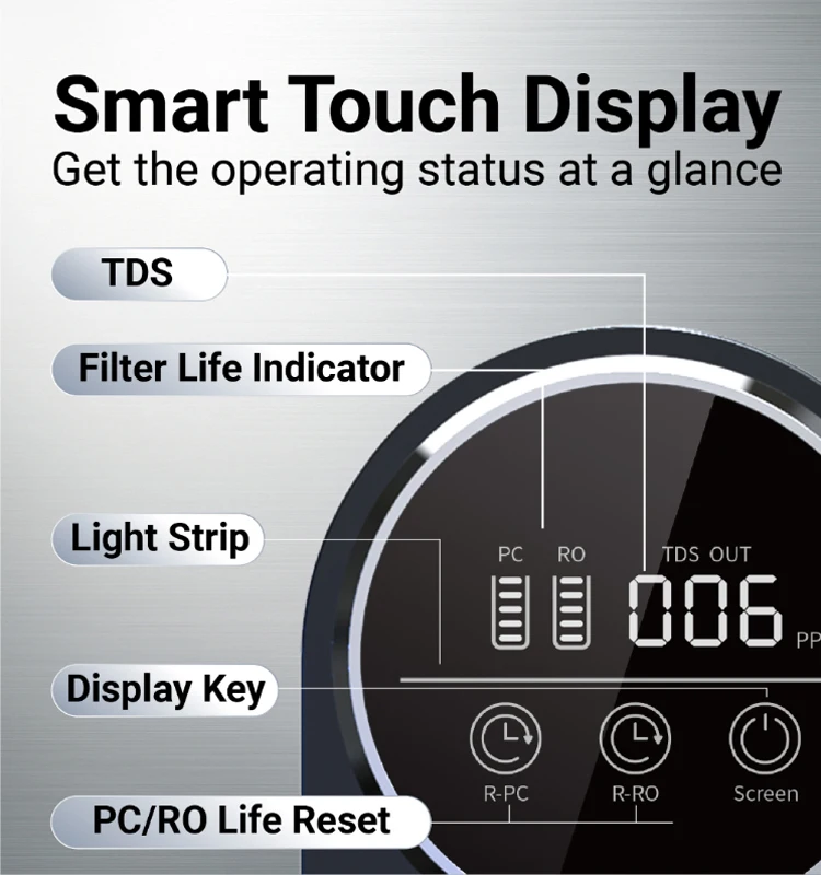 There are multi-stage filtration layers in the three filters, and high-quality filtration media creates a premium effect. The 600GPD water flow, contaminants removal, and tankless design also help ensure freshness. Effectively filters over 1000 harmful contaminants Uses the characteristics of various filter materials skillfully and combines them to achieve better filtration. The composite filter can intercept over 1000 harmful contaminants. Premium faucet This RO system also comes with a lead-free brushed nickel faucet. If there is no hole in your kitchen sink or countertop, you have to drill a hole or use the hole for the soap dispenser. | ||