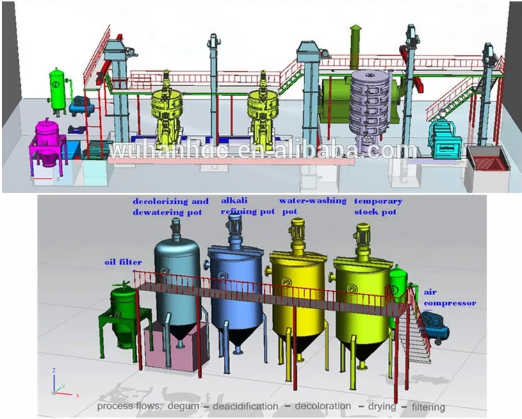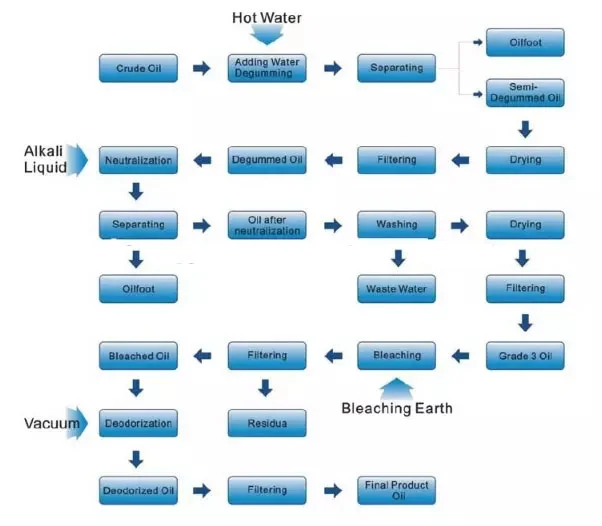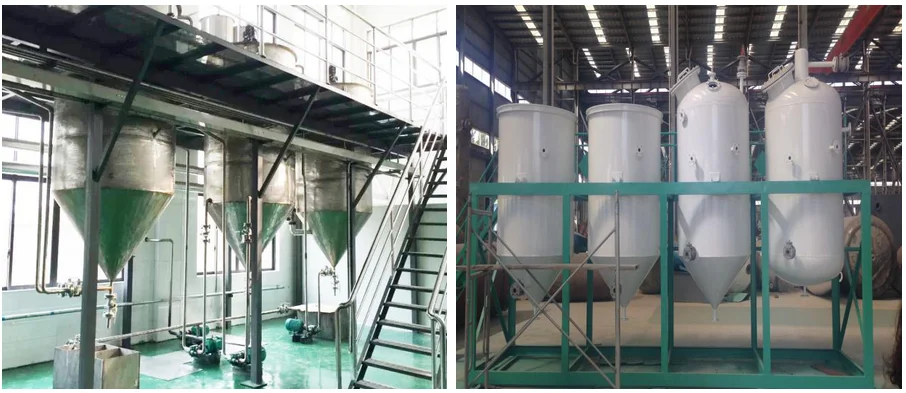 In order to get pure and relatively high quality edible oil after pressing, the crude oil refinery will use our refining equipment to remove impurities in the oil. such as saponin,fatty acid, phosphatide, pigment. The refined oil reaches the edible oil standard while finished refining process.