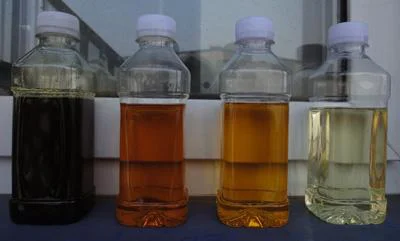 Pump the oil netralized into decolorizer vessel , samely mixing to rise its temperature to 90 degrees,then mixing for 30 mins,to reduce water to 0.1% ,then put a little clay (decoloring media) 24 % of total oil ,mixing for 30 mins ,to reduce the temperature to 70 degrees, then filte the clay with oil filter,to get the oil decolorized .
