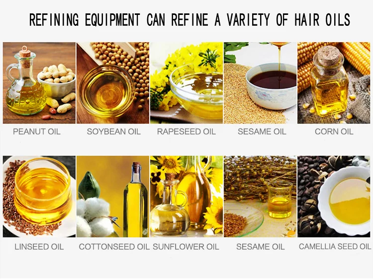Our refining machine is suitable for refining various of crude oil, vegetable oil, such as palm kernel oil, sunflower seed oil, tea seed oil, peanut oil, soybean oil, corn oil, groundnut oil, rapeseed oil and so on.