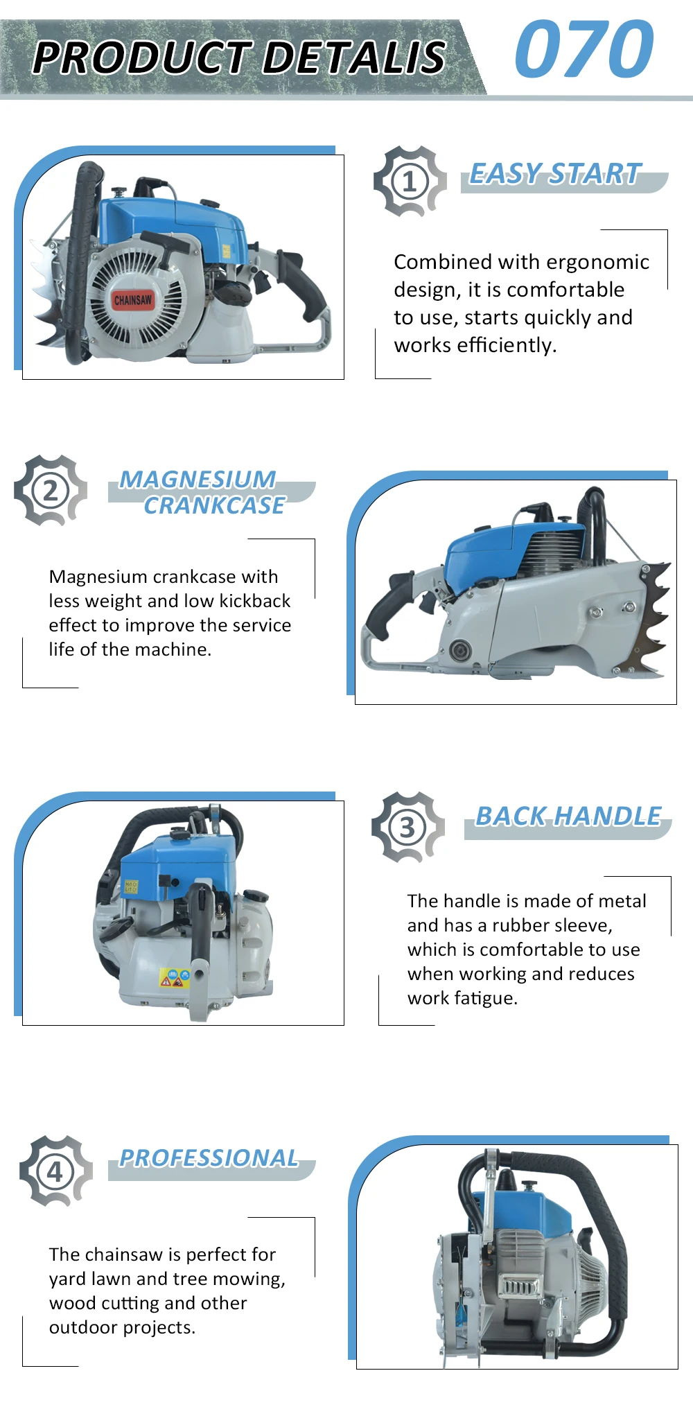 chainsaw 070 chainsaw machine 105CC big power saw high Quality motocierra tronconneuse
