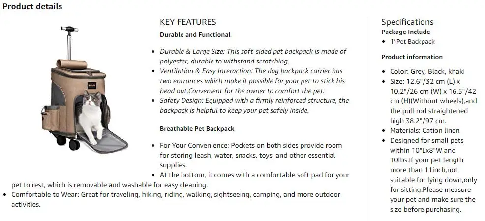 * 3 different ways to carry - Handle Pet Carrier Bag / Pet Carrier Backpack / Travel Stroller,Our carrier seamlessly converts
