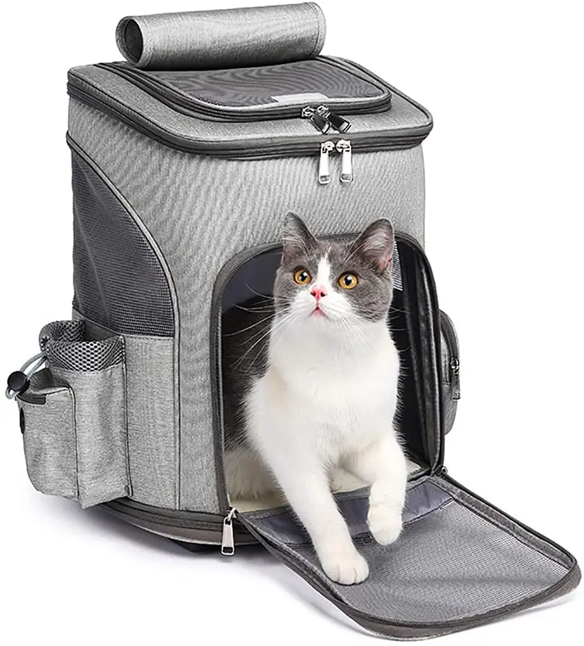 Soft-sided pet backpack is made of nylon, durable to withstand scratching. Providing roomy space for your pet to stay
