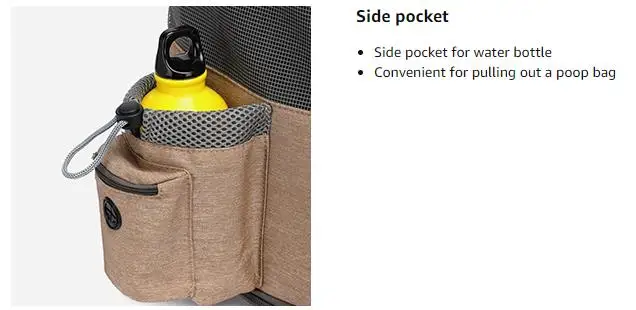 provide room for store. Pockets on both sides, one side is bottle pocket and the Dog Poop Bag Holder , other side is zipper
