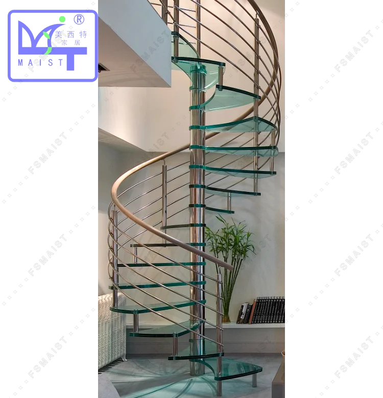 Metal Guardrail Carbon Steel Indoor Curved Glass Railing Circular Fsmaist Spiral Staircase