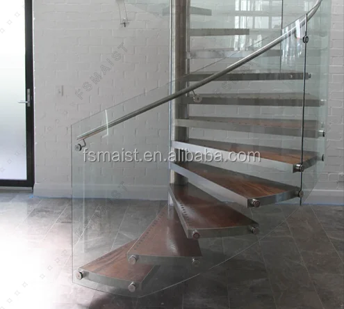 Railings Cantilevered Wood Tread Curved Spiral Staircase