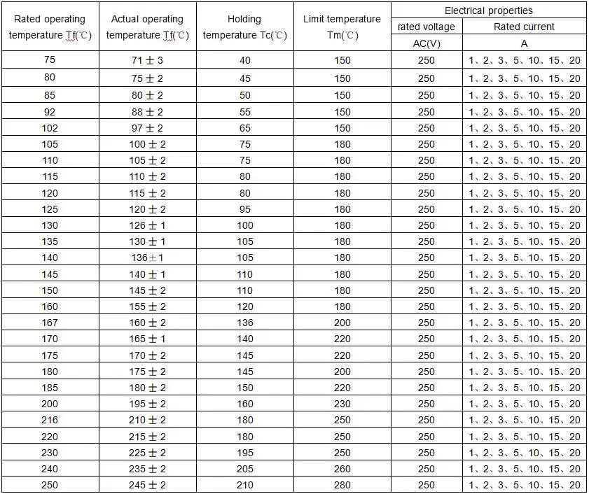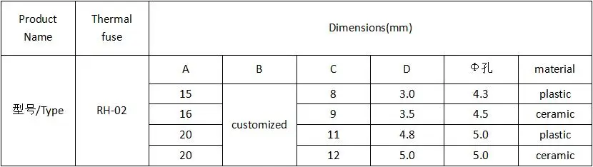 Product Name | RH series thermal fuse |