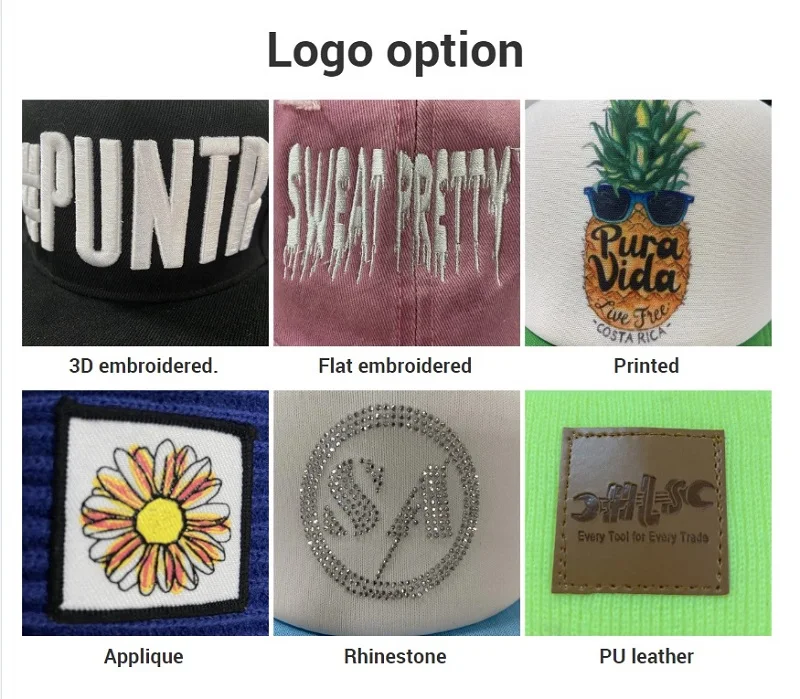 6.Logo and Design | plain | Custom Printing, Heat transfer printing, Patchwork, Flat embroidery, Applique embroidery, 3D Embroidery, Leather patch, Woven patch, Metal patch, Felt applique ect. , Please Contact us and provide the artwork or pictures or original sample. | ||