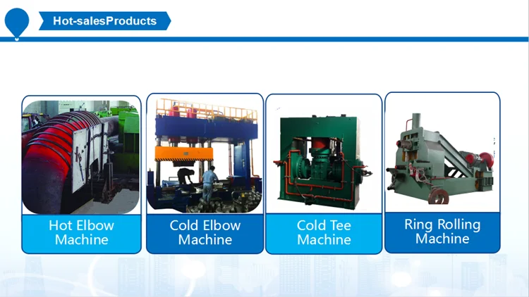 We have focused on fitting machine 10years.Hot forming elbow machine, cold forming elbow machine, long bend machine,cold forming tee machine, pipe expanding machine,marking machine,median frequency heating machine,reducer machine, cap machine, shot blasting machine, cutting machine, bevelling machine,hydraulic press, CNC lathe machine, drill machine, ring rolling machine,