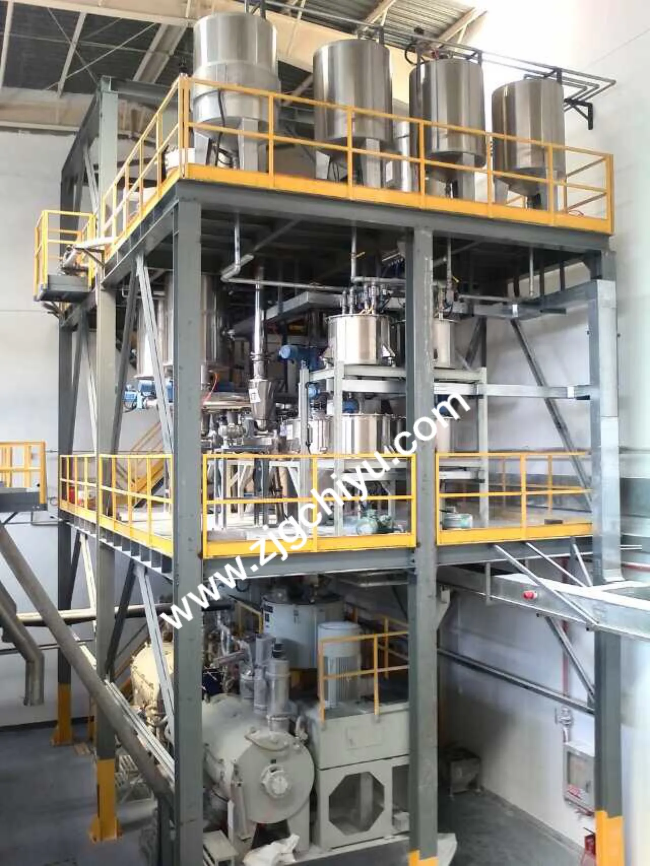 The system is designed for the automatic feeding of multiple extruders. The storage and transportation of materials are carried out in closed stainless steel containers and pipes. Some dust removal measures are taken to effectively prevent dust pollution and keep the workshop clean. The control system is controlled by imported PLC, and the main electrical components are imported famous brand products to ensure the long-term, reliable and efficient operation of the whole system. The control system can automatically or semi automatically complete the whole feeding process. The simulation screen can display the operation status of each part of the system in real time through the indicator light, and can flash the alarm for the failure part to attract the attention of the operator.