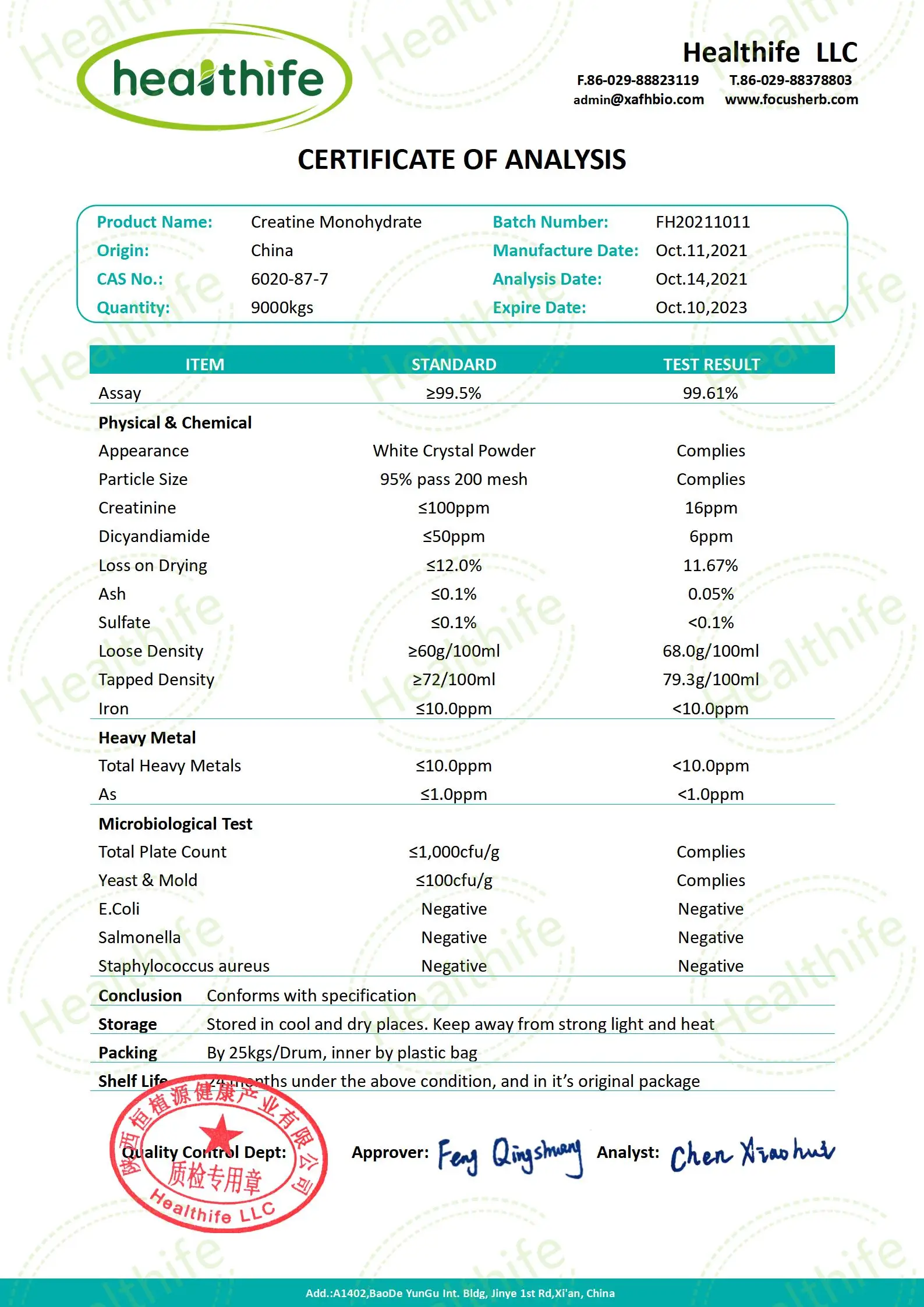 Appearance: | White Powder | White Powder | White Powder |