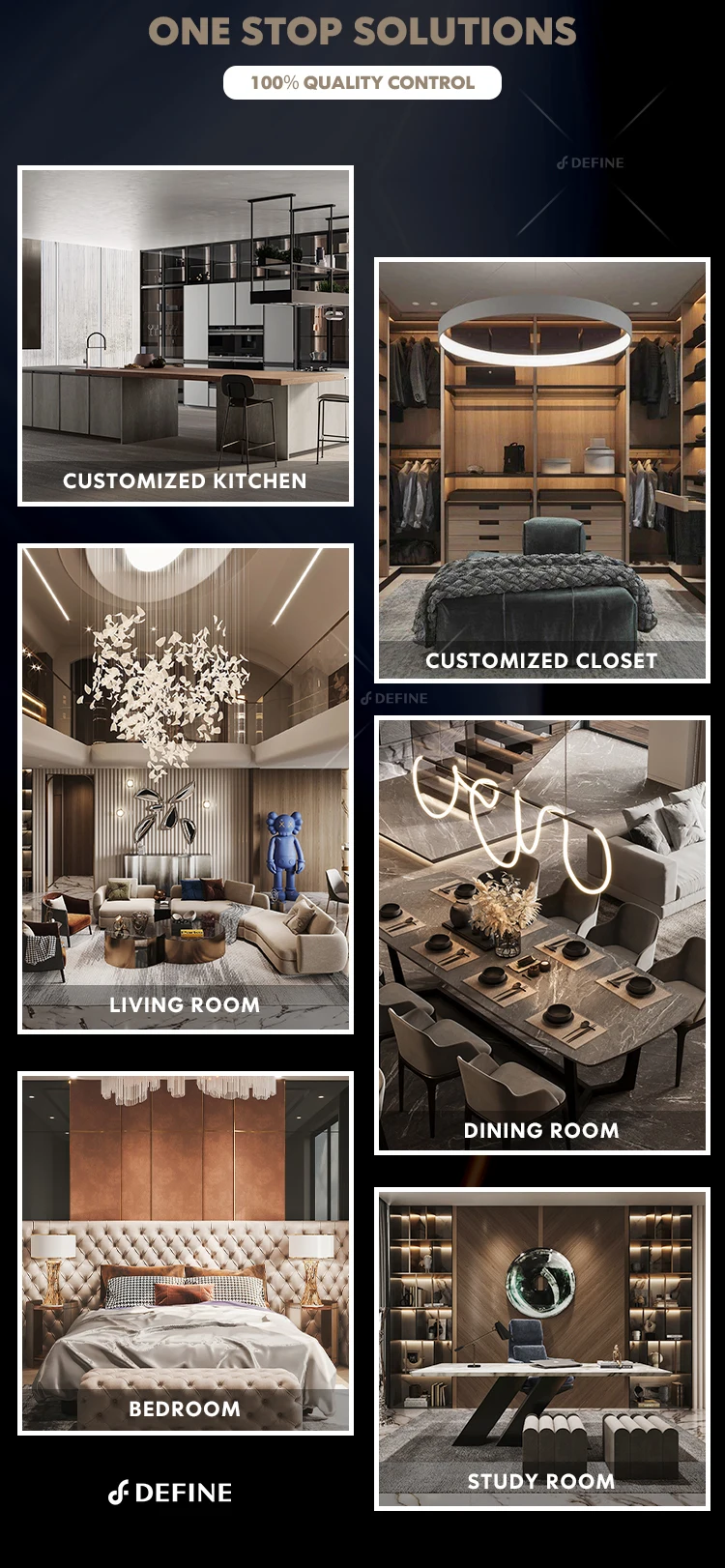 A2: Yes, sure. I can choose for you free of charge. But decoration depends on interior design, which determines whether the whole thing goes in the right direction, and whether every penny you spend for your house is worthy. If you don’t have your designer, “DEFINE DESIGN” can help you to pick up the right items & right material according to your house style. Which we call furnishing proposal. We are charging furnishing proposal per sqm at our cost price, just to enable you to make a right decision.