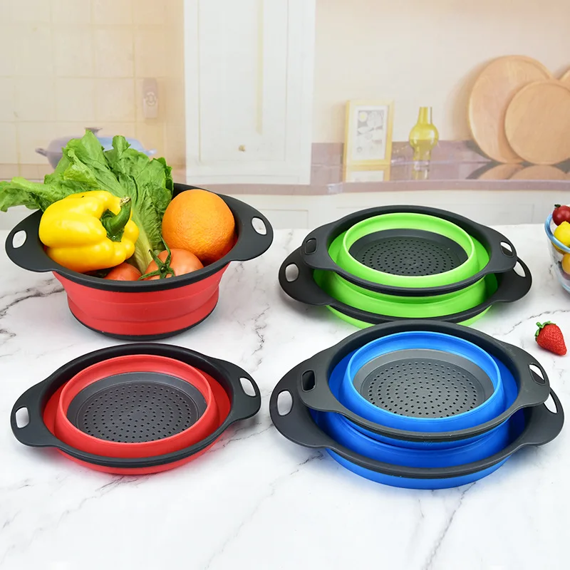 Foldable Silicone Colander Multiple Color Kitchen Fruit Vegetables Washing Basket Collapsible Basket Strainer