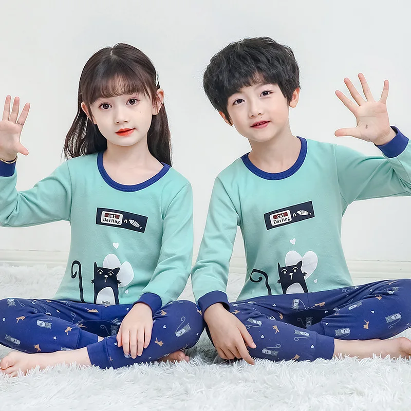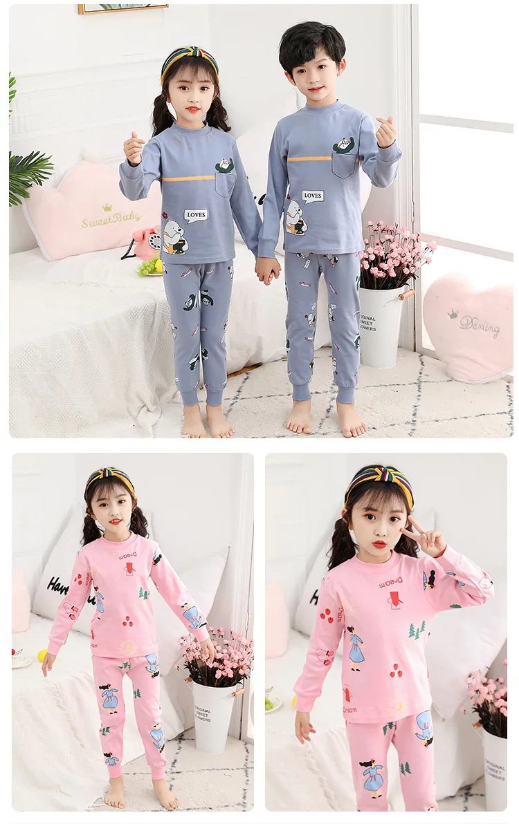 Милый пижамный комплект с принтом на заказ для детей, весенние детские пижамы с героями мультфильмов, хлопковая одежда для сна для девочек, пижамы для детей по низкой цене