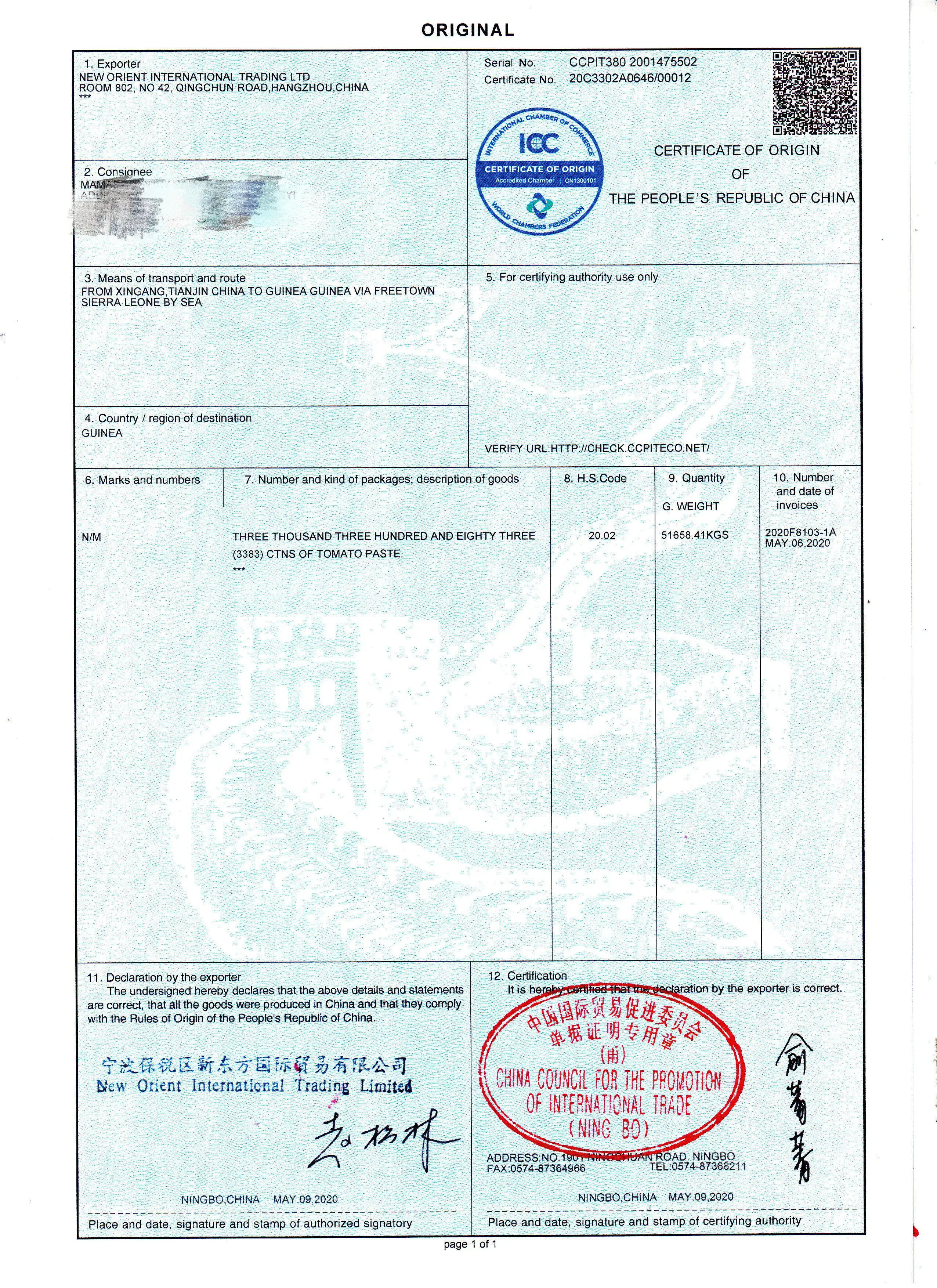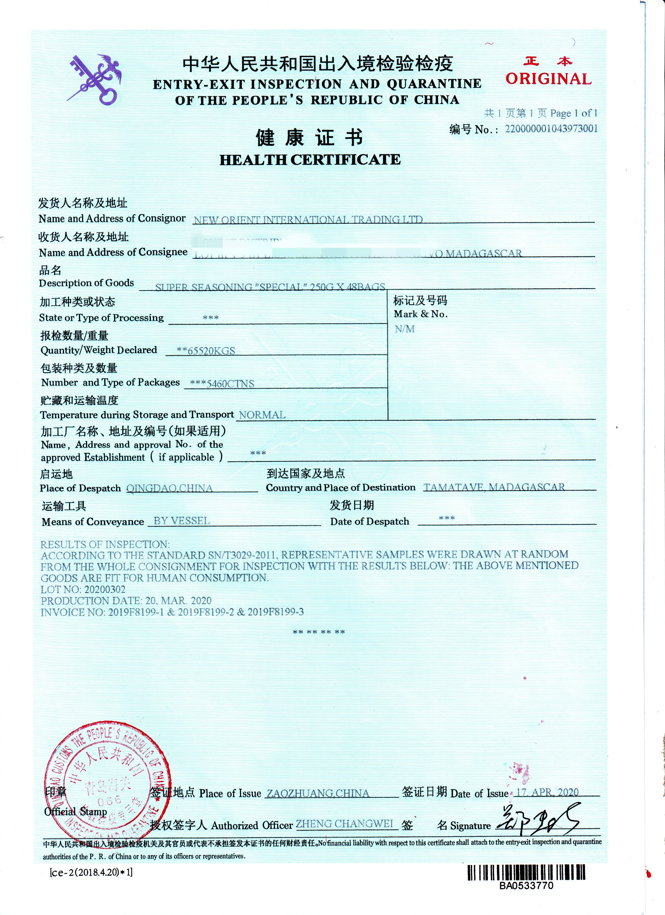 4g*100pcs*20bags | 2120CTNS/16.96MTS | ||
