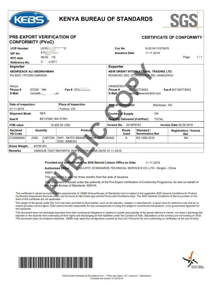 FLAVOR | PACKING TYPE | PACKING | QUANTITY(20'/FCL) |