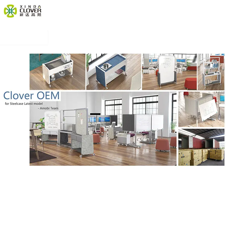 Dimension(mm) | Length = 1200, 1400, 1500, 1600, 1800 Width = 1200, 1400, 1500 Standard & Customized | Materials | Frame : Aluminum Panel : Fabric Desk frame: Iron Table top: Melamine | |||