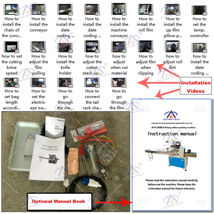 Yes, not only manual or operation video, 3D drawing also available to make as per your design,also the video we can make of testing the material from our packaging machine if your packing goods easier for us to find from our local market.