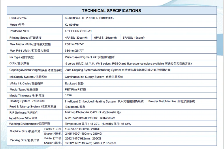 KingJet PET Film DTF Printer | ||||||||