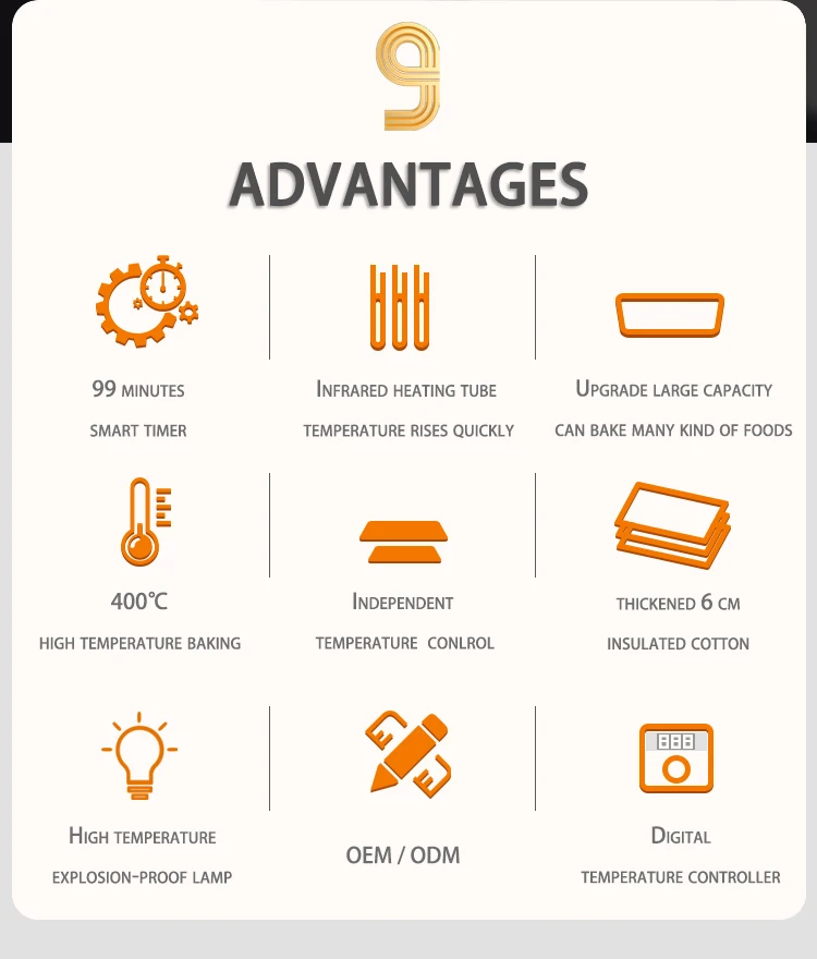 Note: | 350-400℃ is a special high temperature, 90% of the food does not need to use this temperature, otherwise it is easy to scorch the food, please do not use this temperature for more than 15 minutes, otherwise it may cause damage to the temperature controller or other parts. |