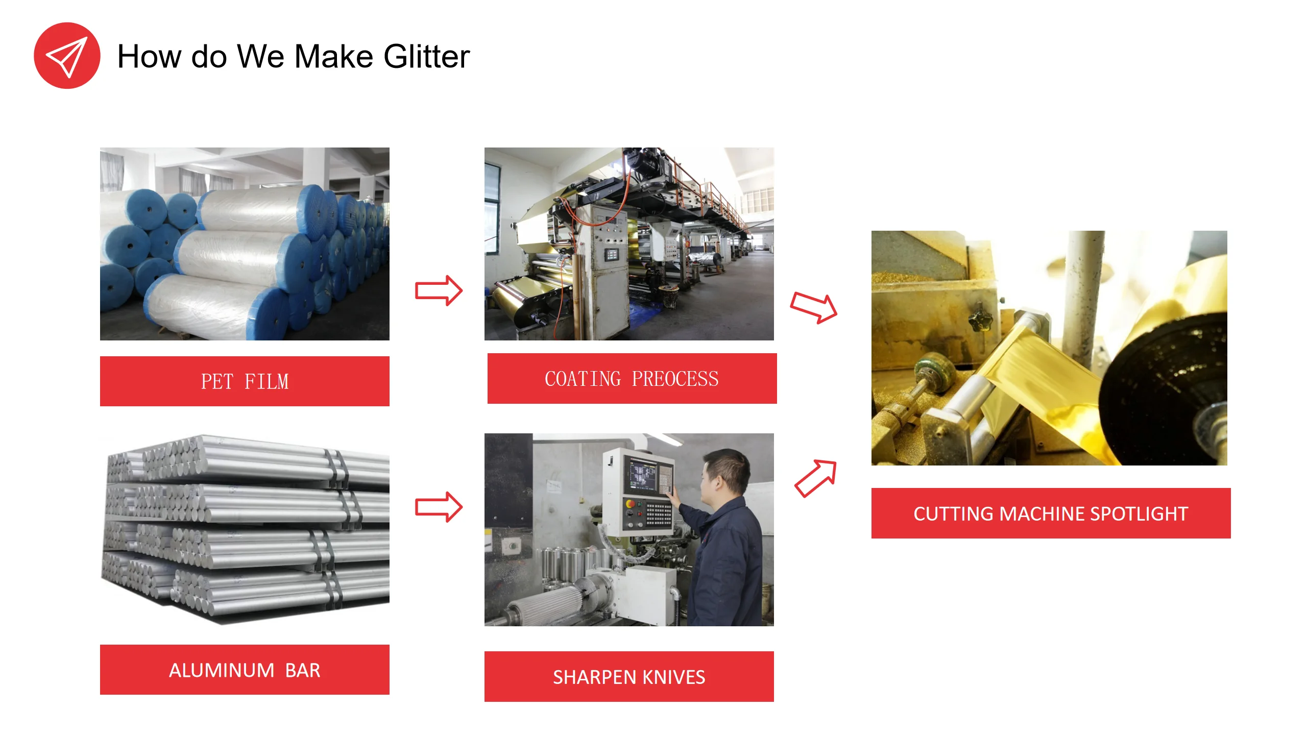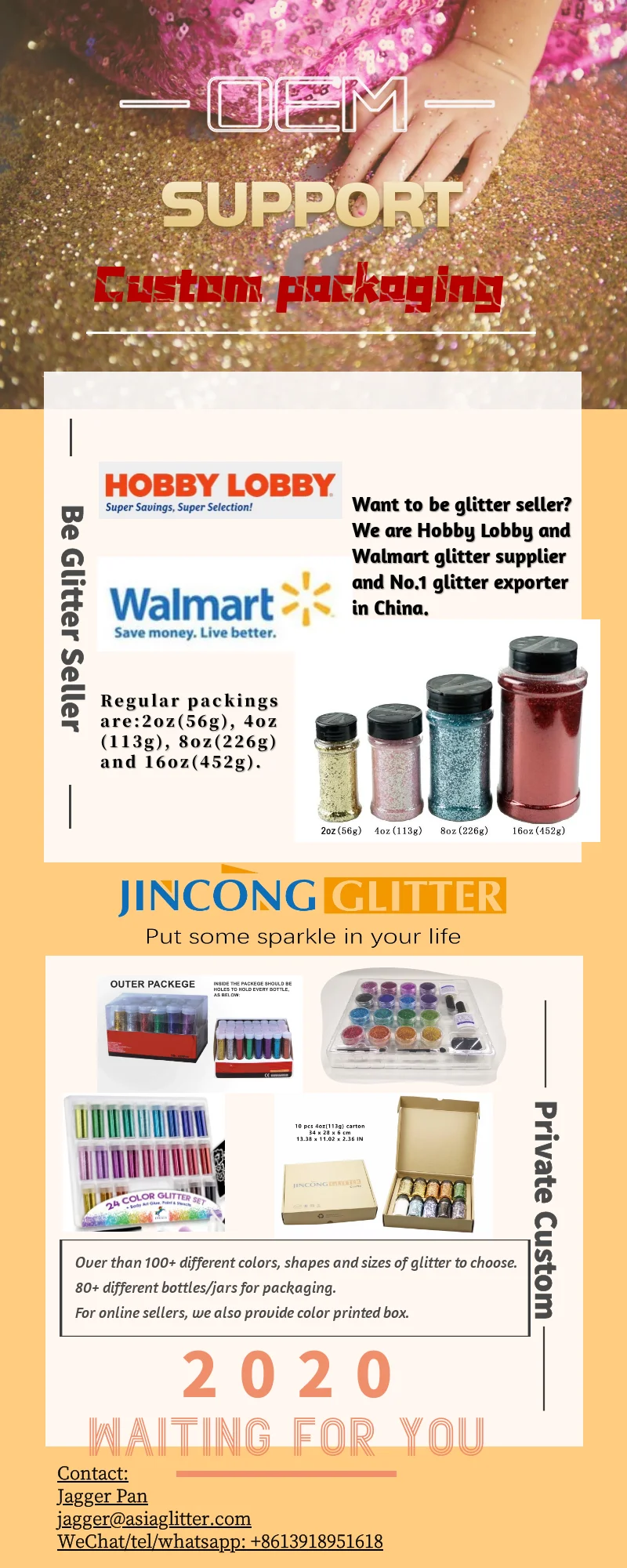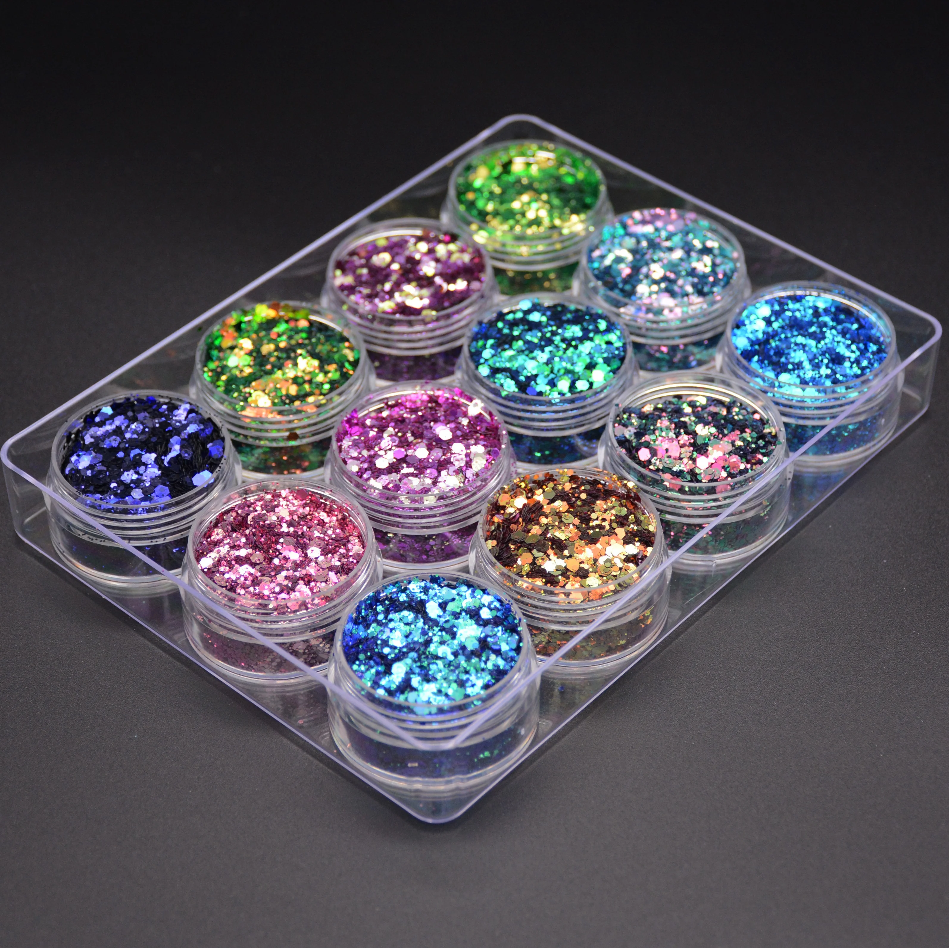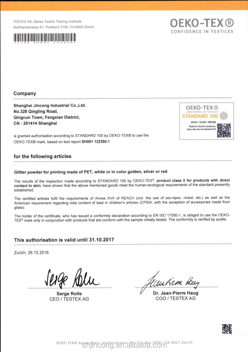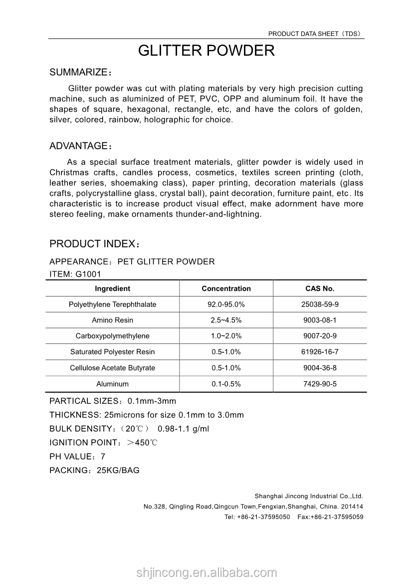 Glitter is a kind of plastic powder made of PET films. It makes fabrics shinning by manual or machine screen printing.