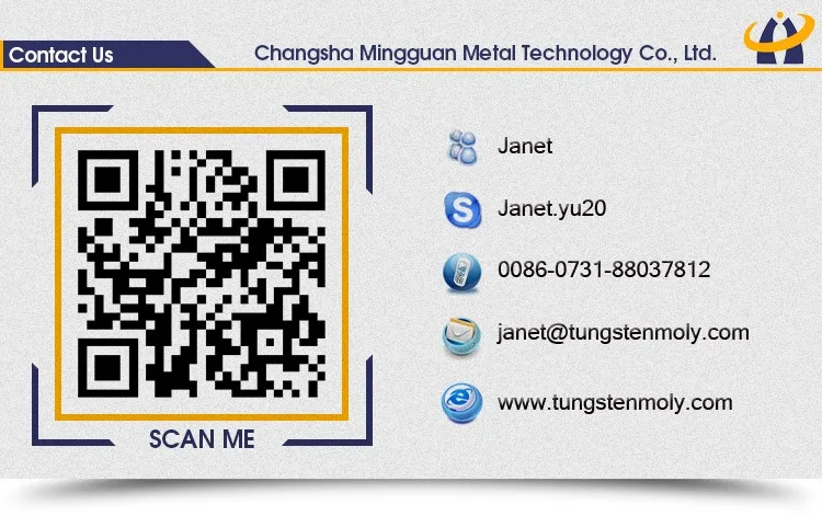 Welcome send us your drawing ,We not only produce the standard types, but also the tungsten/molybdenum/tungsten copper/tungsten carbide parts based on your designs. We have rich experience on this and a big part of our product is from our clients' designs. We can provide the technical support, like how to select the right grade of tungsten to match your using purpose, we will make it very easy and simple to do business with us: