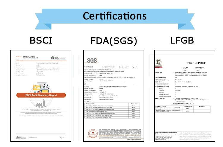 Certification | SEDEX,LFGB, BPA FREE, LEAD FREE, CA65 |