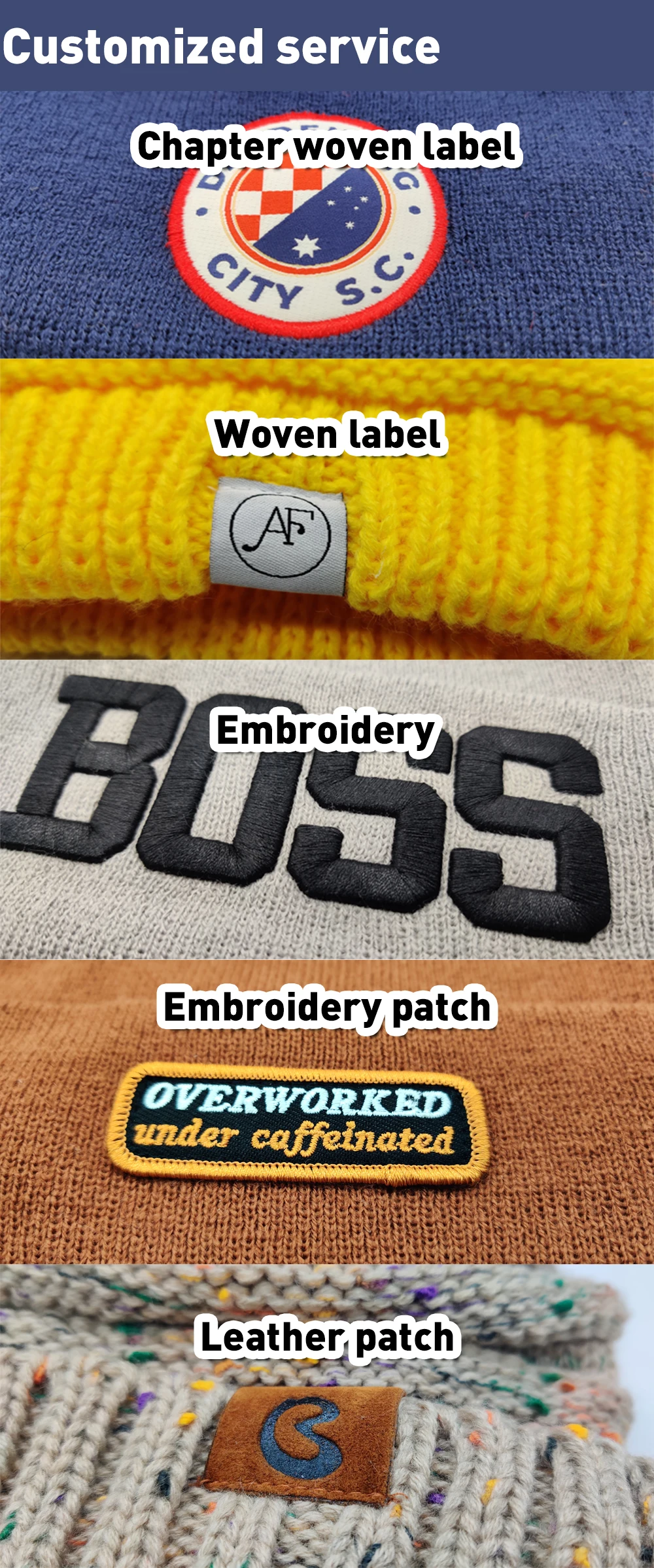 Logo | Accept Customized Logo Printing, embroidery Heat transfer printing Applique Embroidery 3D embroidery leather patch woven patch metal patch felt applique etc. |