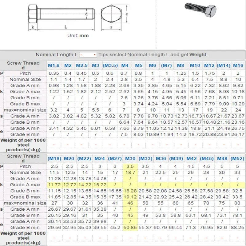 Model Type: DIN 933 Hexagon Bolt