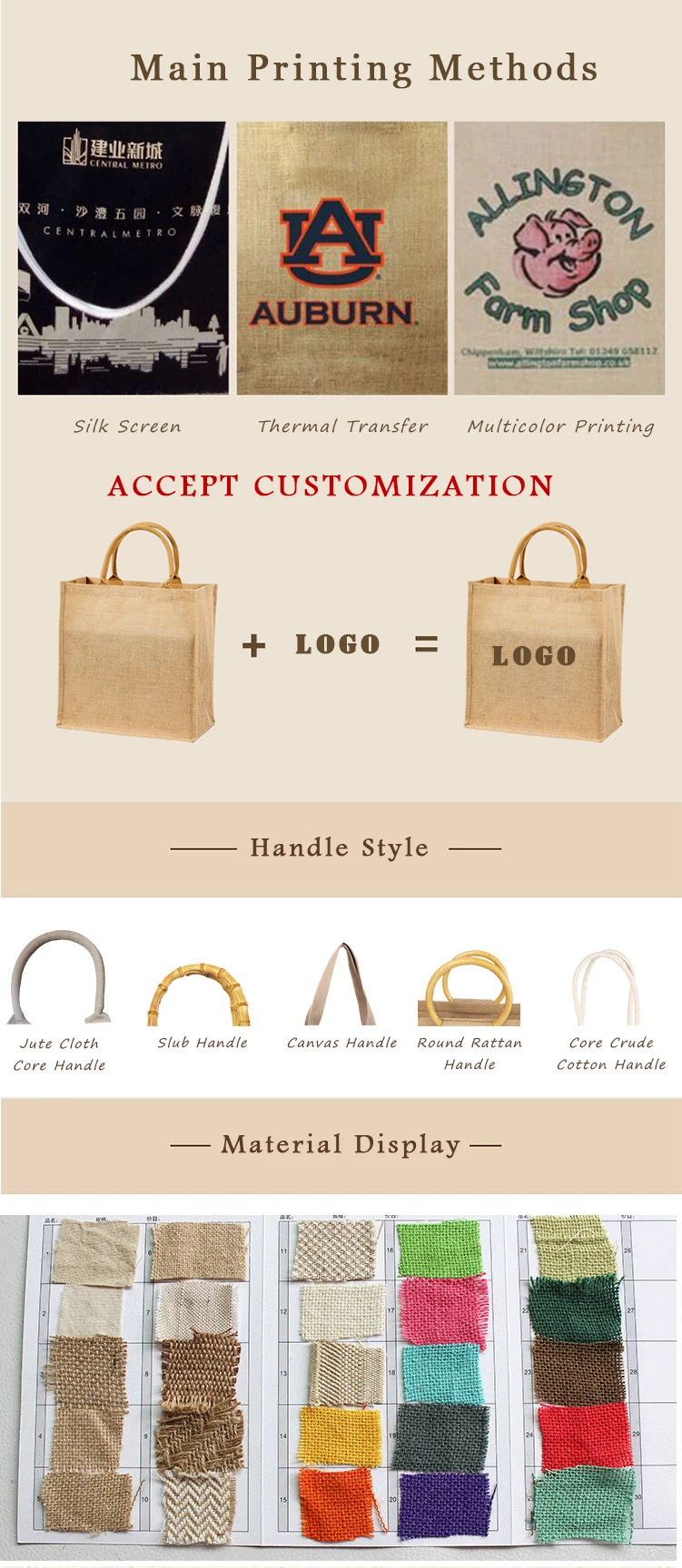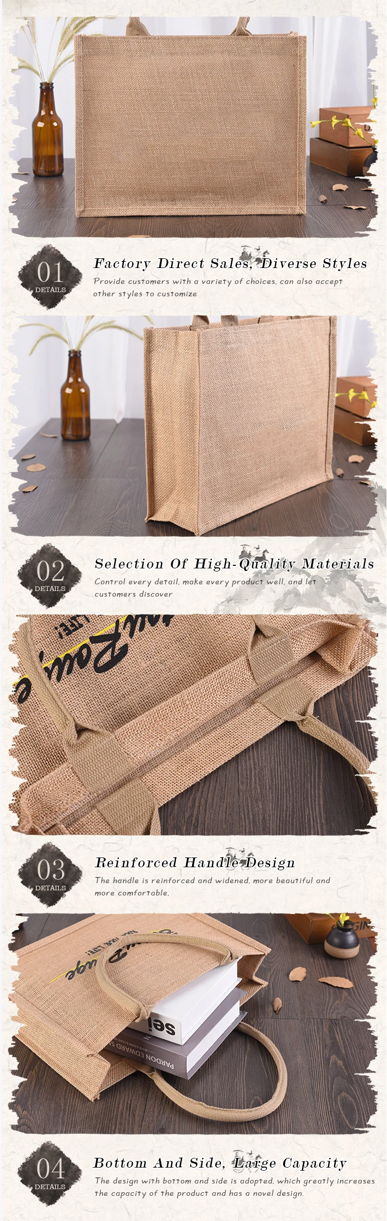 Product name: | Wholesale Custom Printing Logo Natural Gunny Eco Friendly Jute Tote Bag Recycle Foldable Jute Shopping Bag |
