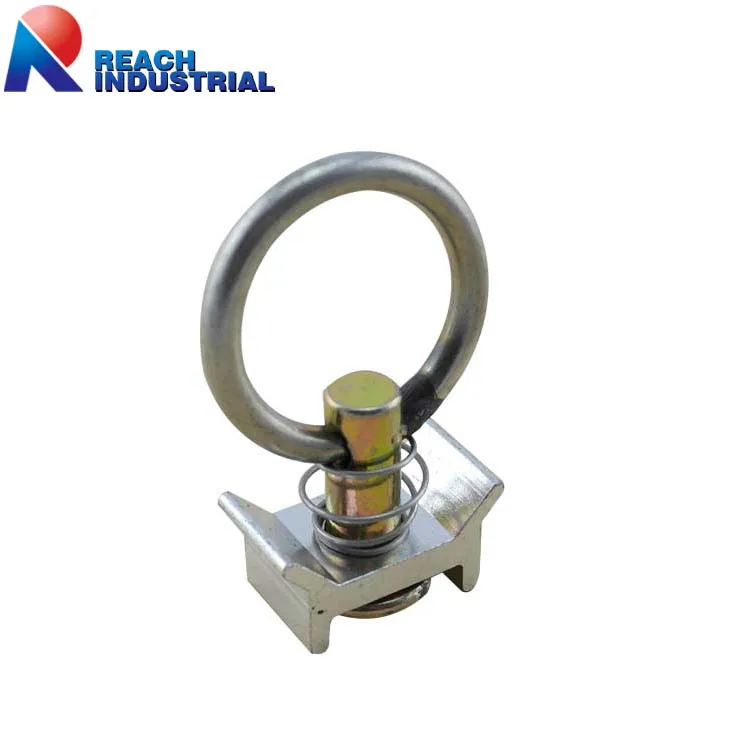 Single Stud Fitting which have been assembled with aluminun W base and stainless steel O ring is for use with Logistic Track / Airline Track in enclosed trailer tie down applications.It's easily and quickly to create a secure tie down point,just insert the bottom disc into the desired round opening on the track and slide the fitting between the two of the tracks openings,so that the stud will be secured in round slot.and stainless steel round ring will work with a variety of tie down end fittings.