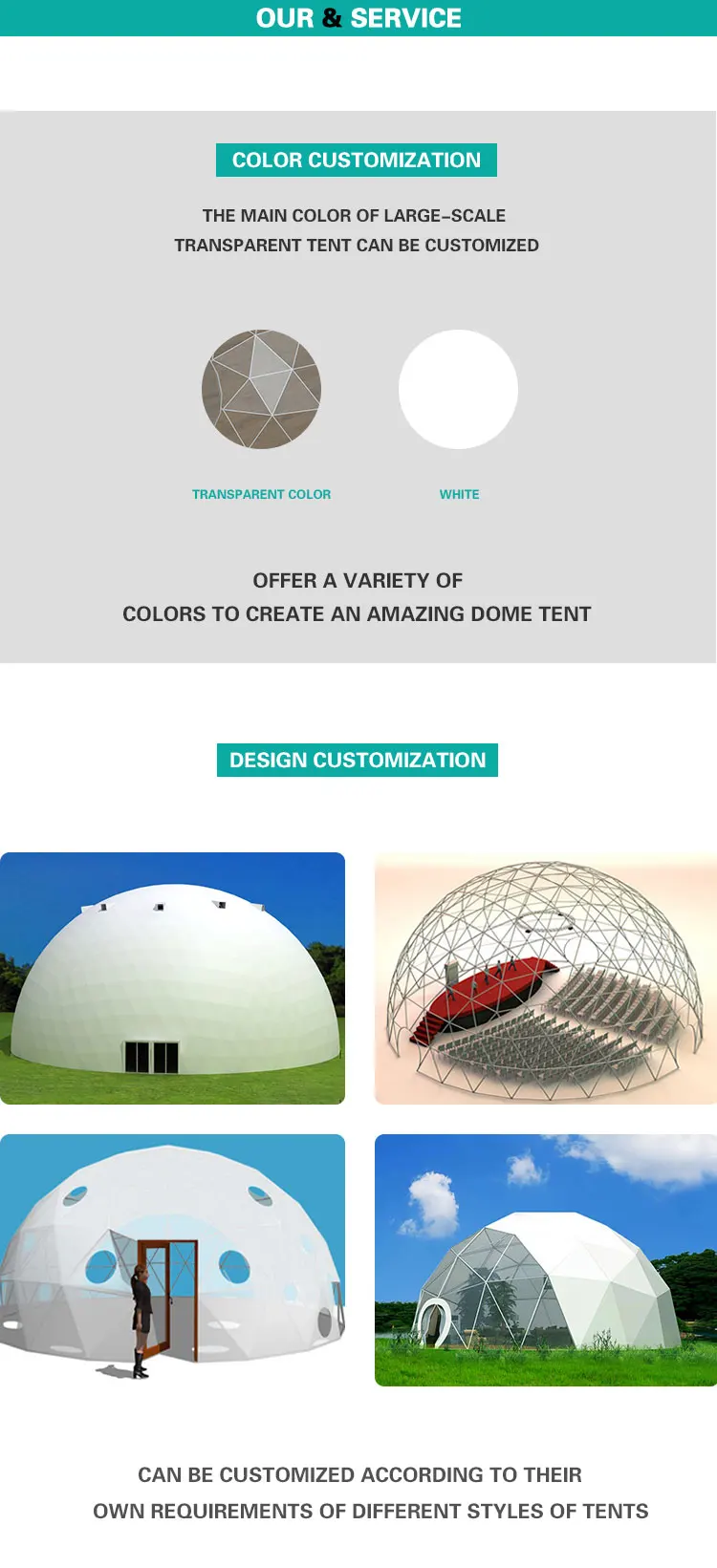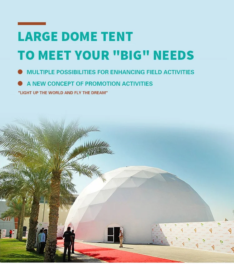 10-60m diameter,large dome is perfect for big events,festival tent,we made for our customers with long-term cooperation. As a tent manufacturer ,ShenBao is can produce and build the 10m to 60m domes.