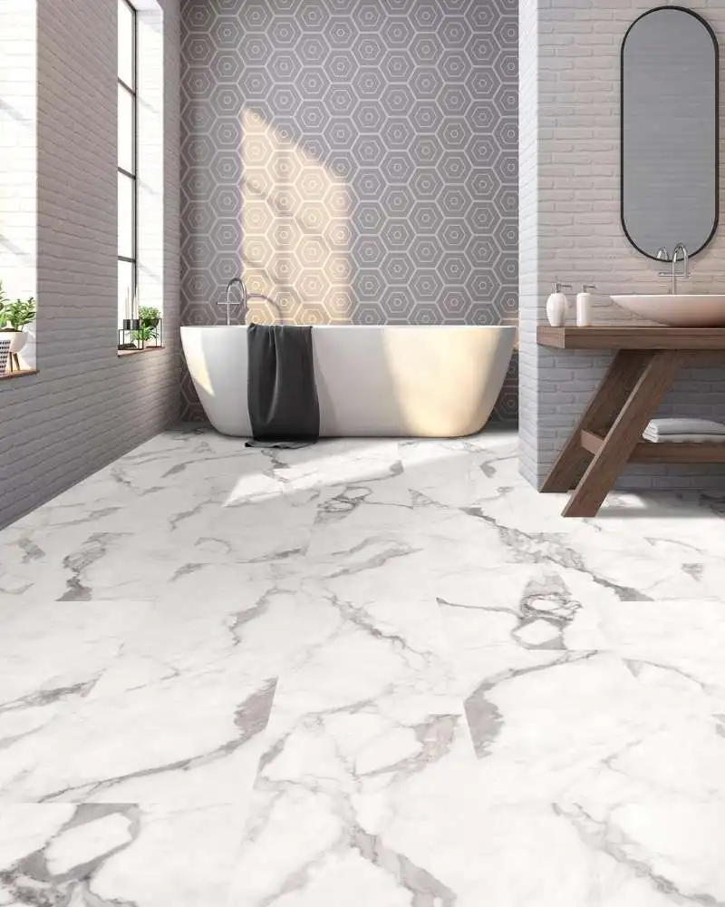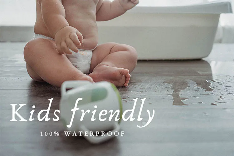 SPC - Stone Plastic Composite made up of a blend PVC and natural stone powder making the product extremely stable and water resistant, used in kitchen and bathroom as well.