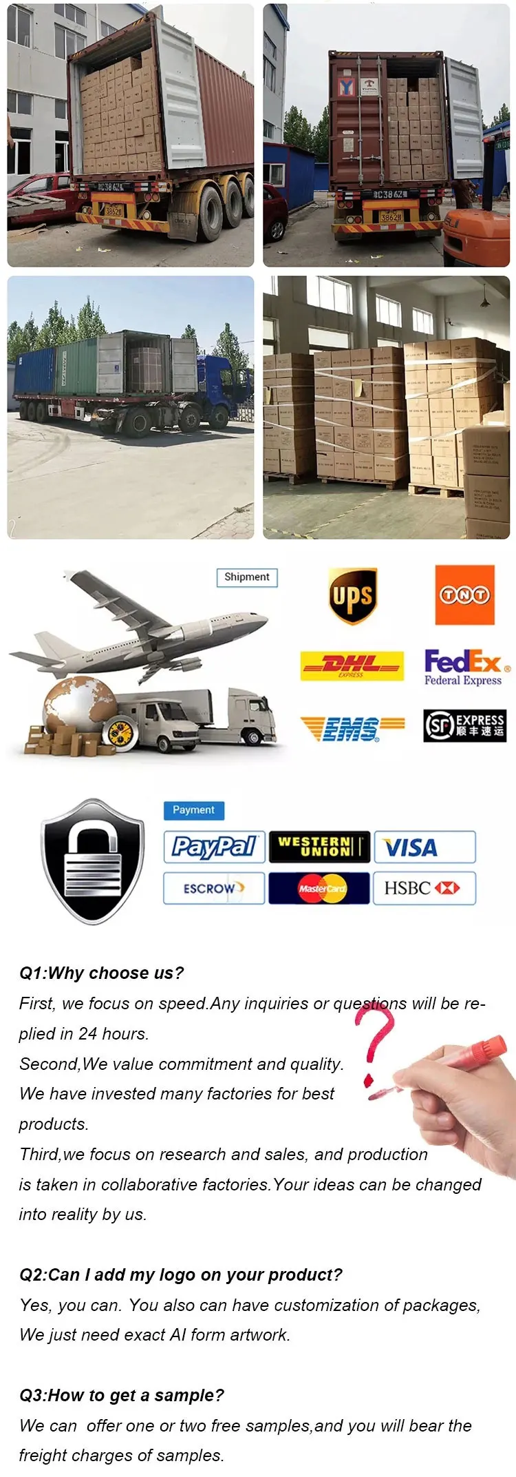 A: Yes, we can provide free samples and the shipping costs must be paid by the customer. We will recommend the most suitable shipping terms for you.
